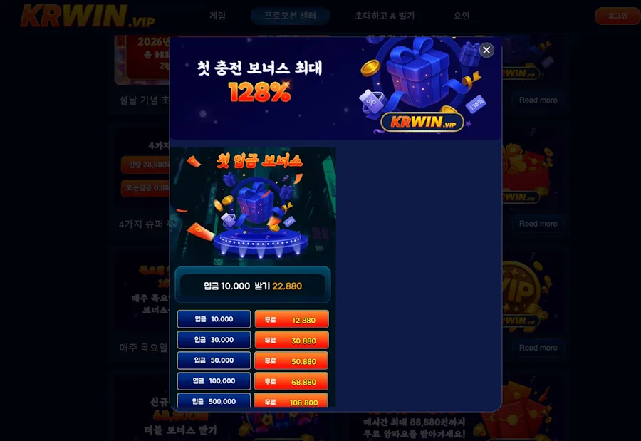KRwin promotes five primary bonus categories: Welcome Bonus, Deposit Match, Reload Bonus, Cashback, and VIP Programs. The platform advertises these incentives prominently but doesn’t disclose specific wagering requirements in its main promotional content.